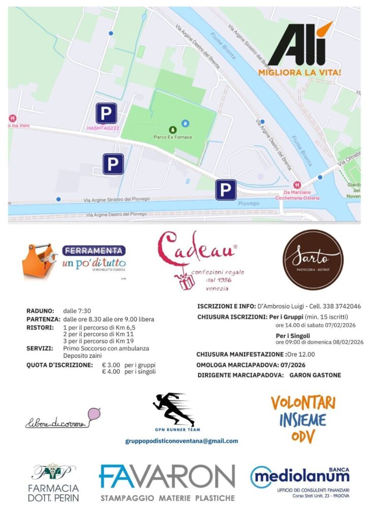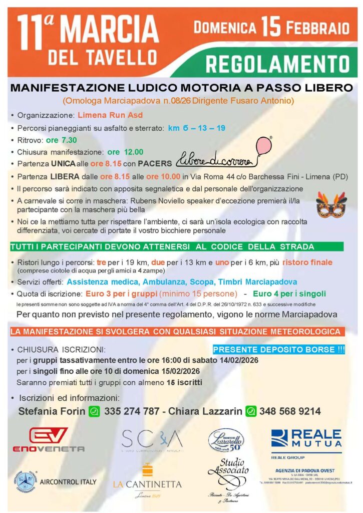 A partire dal 1° Gennaio 2026, nelle marce omologate dal Comitato Marciapadova, le quote massime di partecipazione sono state aumentate di € 0,50 e non potranno superare la cifra di € 4,00 per i Singoli e € 3,00 per i gruppi.