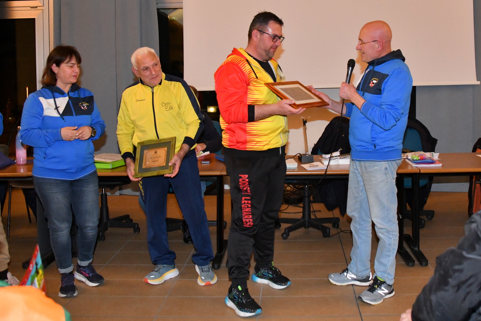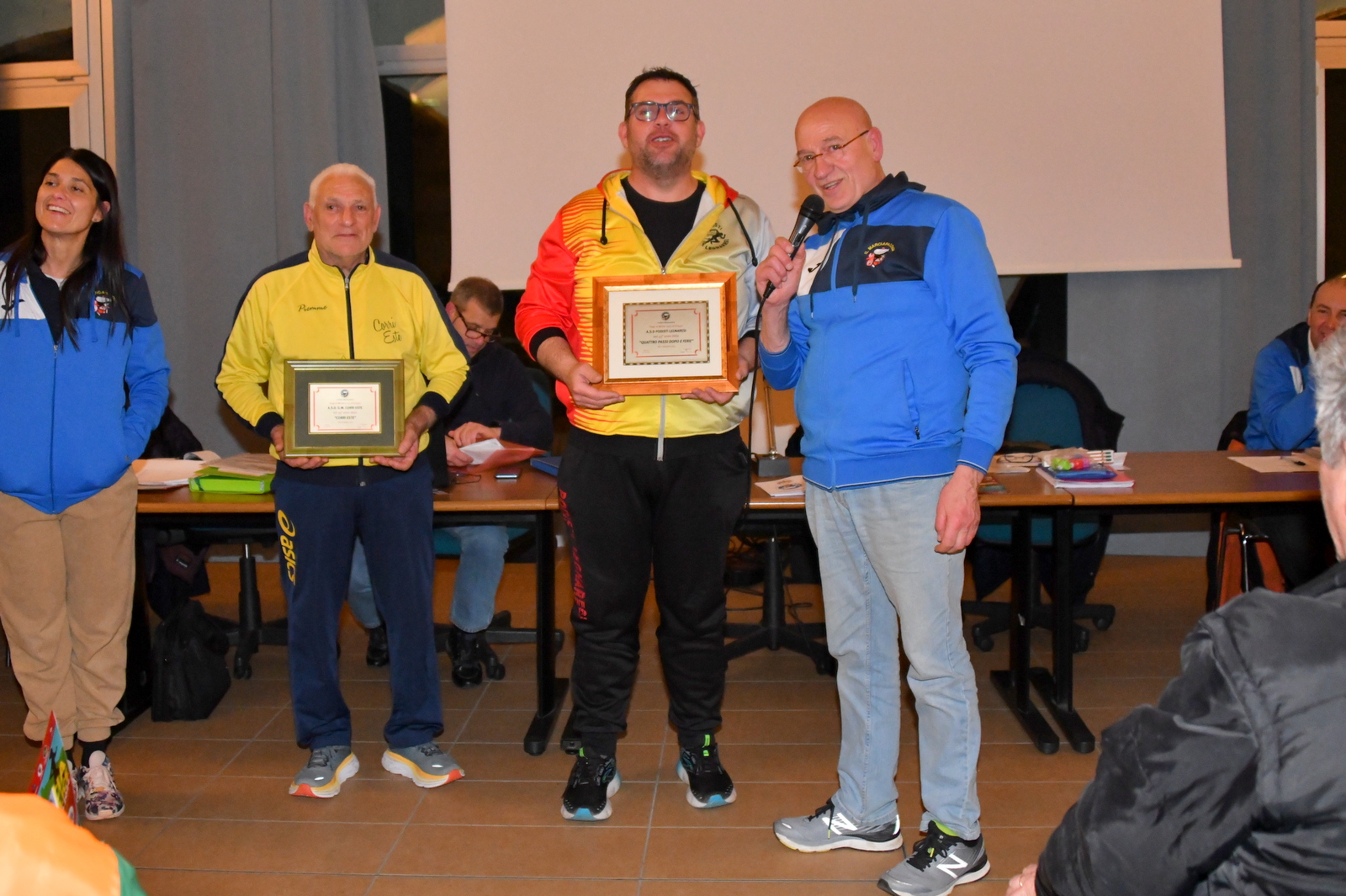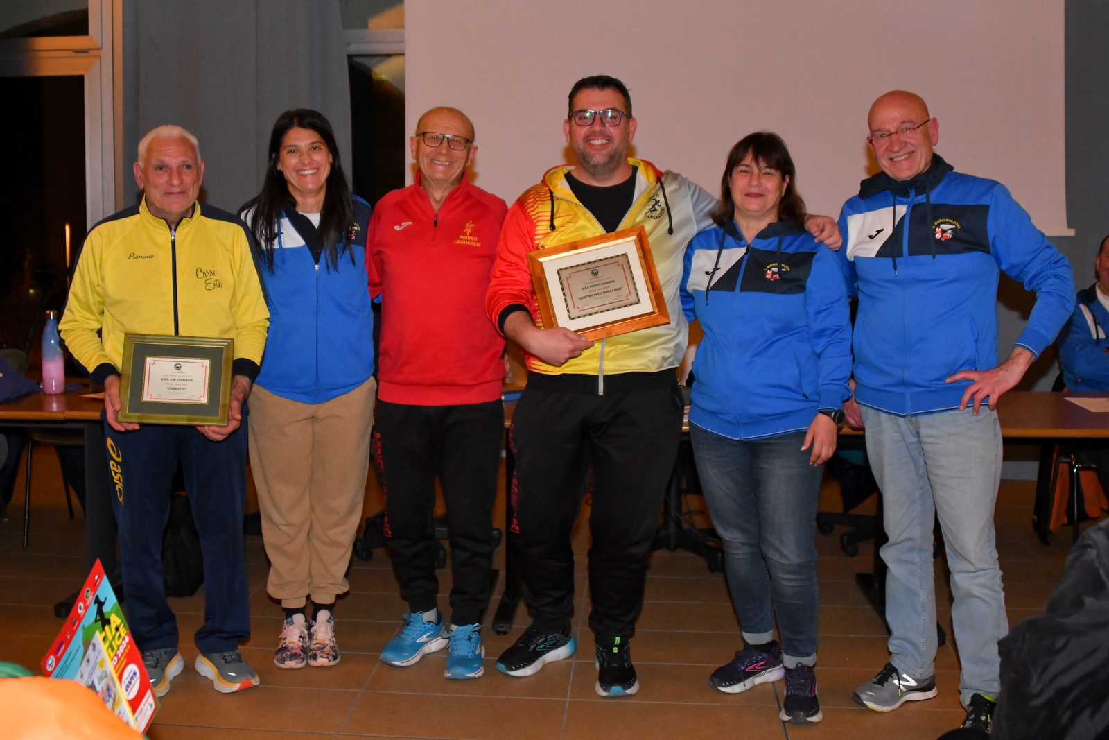 A ritirare il riconoscimento sono stati gli attuali presidenti. Giorgio Venturini per i “Podisti Legnaresi” e Donato Berardinello per “Corri Este”. A consegnare nelle loro mani il quardro celebrativo, a nome del Comitato Marciapadova, è stato il Presidente Francesco Renna.