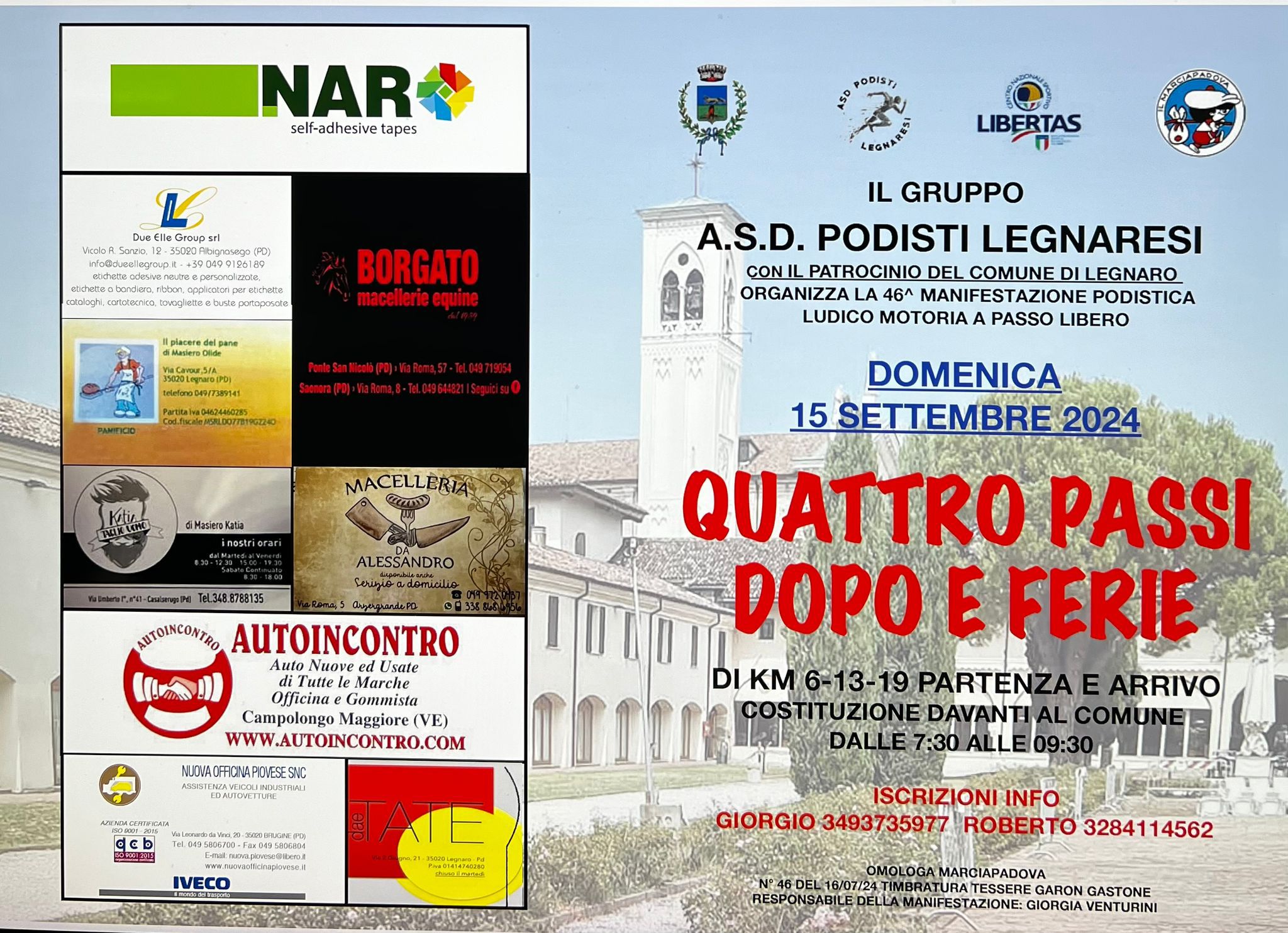 46ª “QUATTRO PASSI DOPO E FERIE” • LEGNARO (PD) • 15/09/2024