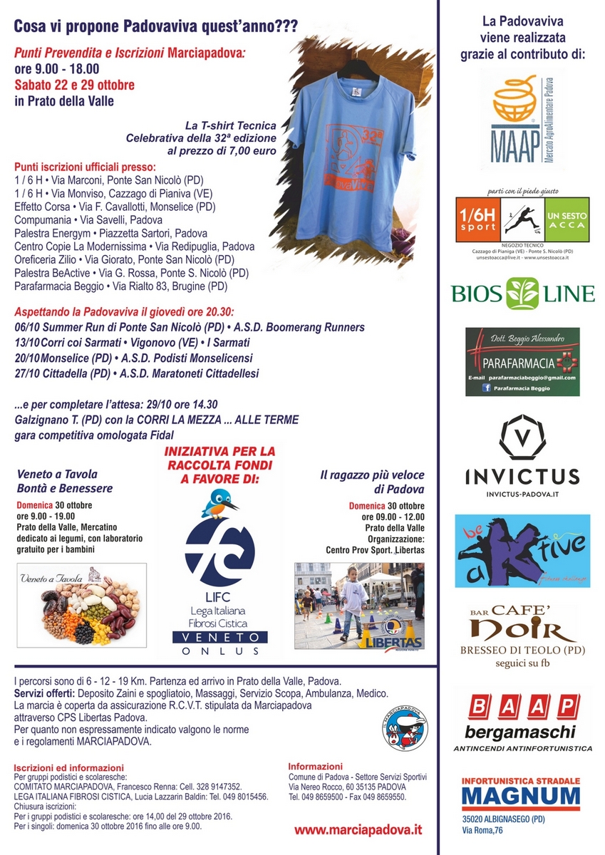 32ª PadovaViva • Prato della Valle – Padova • 30/10/2016 32ª PadovaViva – Le immagini!!! Il FOTOALBUM a cura di Luca Bertipaglia e Francesco Renna.